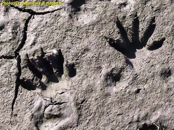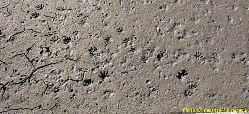 たまたま水を抜いているところでは、カエルが食べ放題になるのかいろんな動物が来るみたいで足跡が多数なのよね。