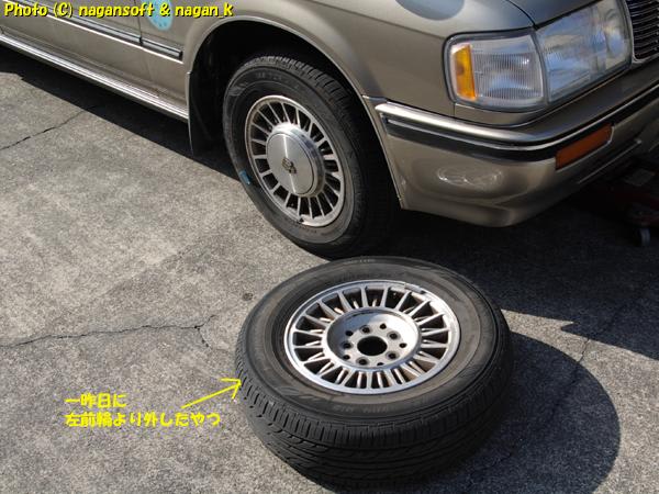 45Km/h走行でブルブルと車体が震えるクラウンワゴン、とりあえずで前左タイヤ1本だけを予備のタイヤと交換したのが一昨日です。