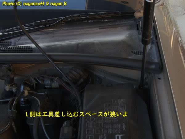 L側はヒューズボックスが鎮座しているので工具を差し込むスペースが狭いのよ。