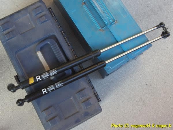 でだよ。R側は中古部品。L側は車体についていたやつ。これでボンネットを開けたまま維持できないよ。というより、最初より力なくなったよ。