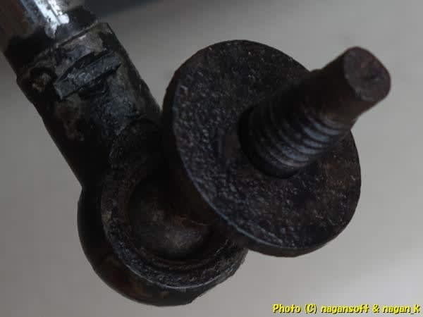 抜き取ったボルト通し穴部分は、もちろん29年間ボルトが食いついたままだったので錆ているのよねー。