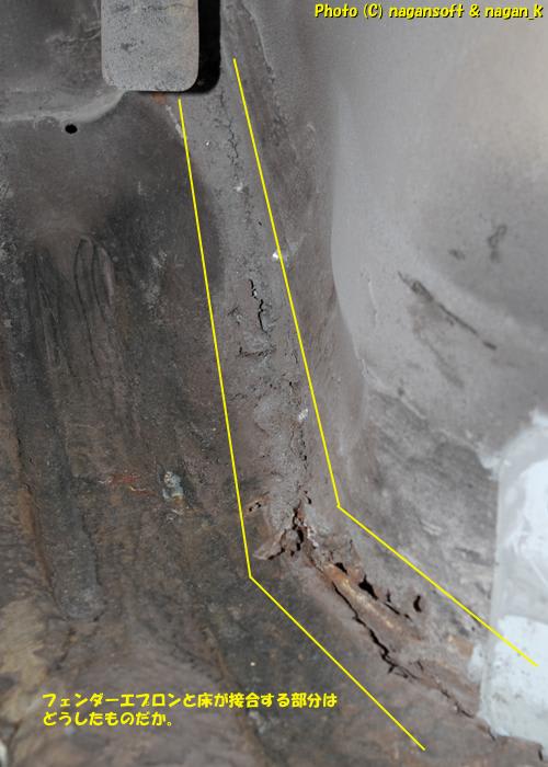 運転席床とフェンダーエプロンとの接続部分がダメージ酷しです。