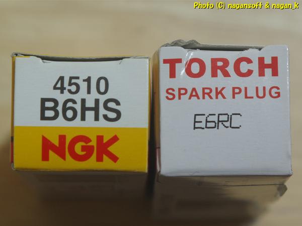 で、知人の手元に適合表のようなものがあるらしく、B6HSとジャスト互換はないけど、BR6HSと互換というプラグならあるでー。レジスター有無の違いだから、BR6HS互換でもいいんとちゃう?といわれ、「TORCH E6RC」というプラグでいけるだろうと指定されました。