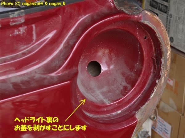 この錆穴周辺を対策修理するには、その裏側にベッドライト奥のお釜が立ちふさがるのです。お釜があることでトランク側からは見えない死角なんですよ。