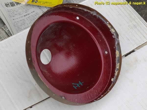 ボルト通し穴がしっかりした輪郭しており叩いたときの音もマシだったので、その下の欠損部だけにバネルボンドでパッチ塞ぎすればいいと思っていたのよ。