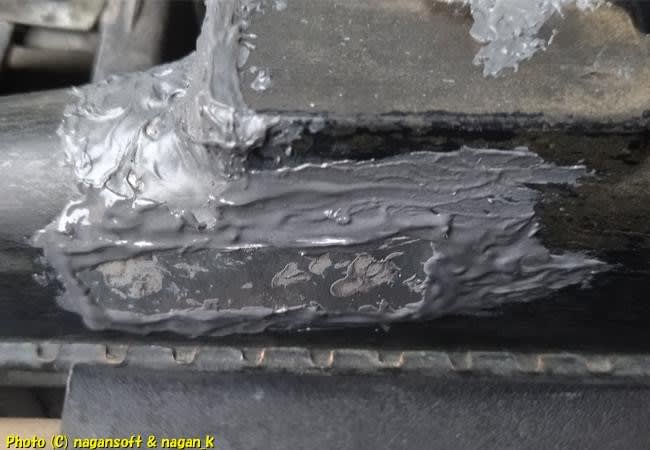 アルミ薄板をペッタンコと貼り付けてパッチです。