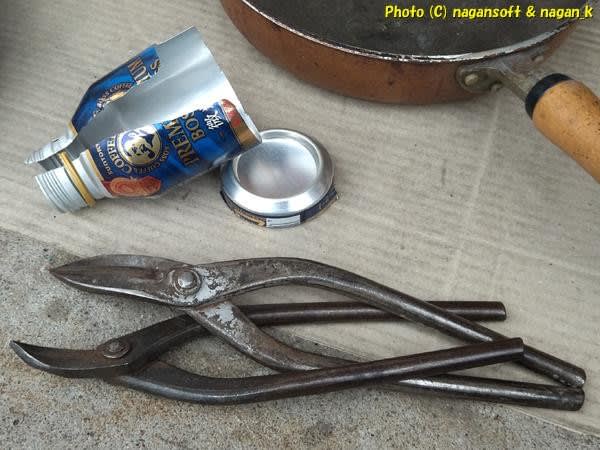 アルミ素材を切り刻みます。ってアルミ缶を切るだけです。