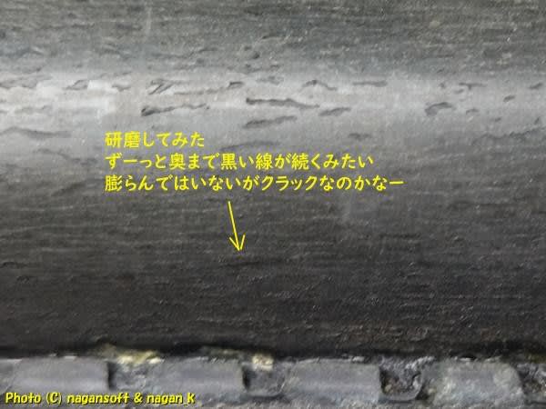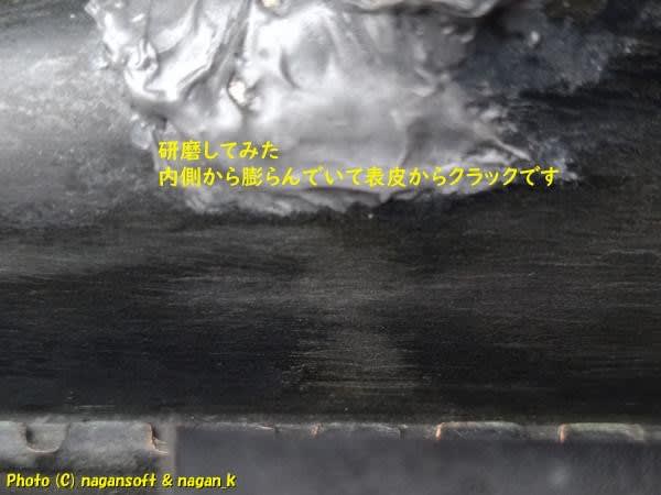 研いだところ、内側から膨らんでいて、その膨らみの表面に外側からクラックが入ってますよ。
