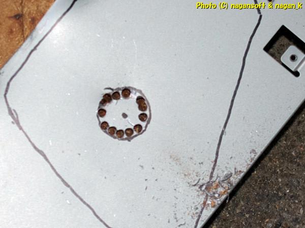 ホールソーなんて持っていないので、ドリルでポチポチと輪郭線を開けていきます。