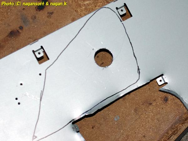 もちろんガタガタの切り抜き穴になるので、金ヤスリでシコシコと削っていきます。