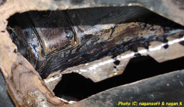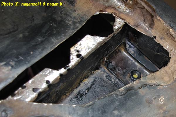 R-2君、助手席梁裏のパッチ鉄板作成途中
