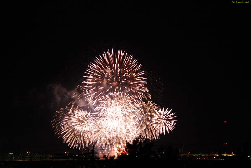 うーん。最後の方の花火連射は、目視では迫力あるのに、写真だと白々なのよねー。