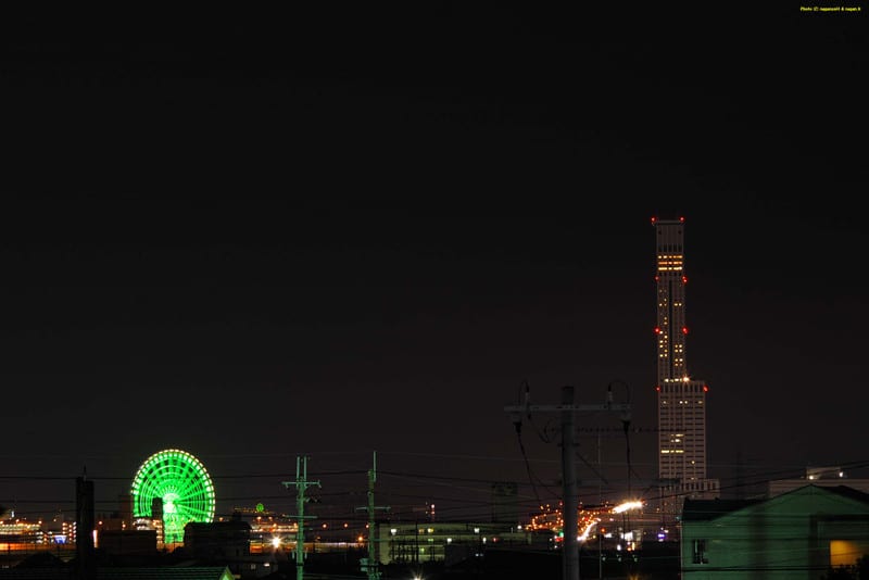 ちなみに、ゲートタワービルと観覧車を狙うとこんな構図になります。