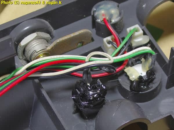 リセットスイッチはホットボンドが欠落してます。もちろんスイッチが押し込まれて剥がれてます。