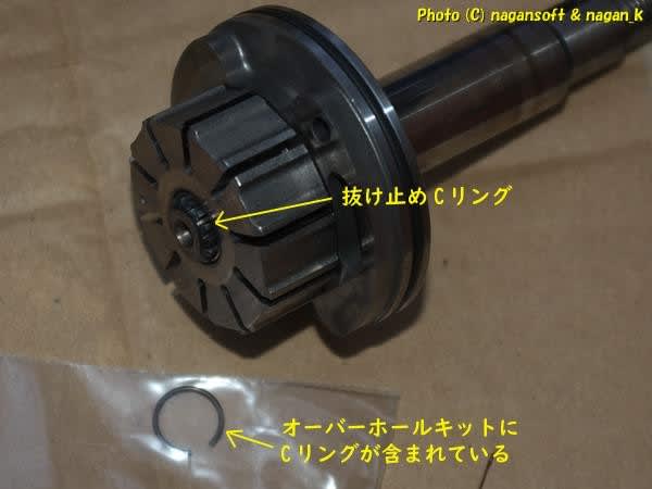 このCリングはどこやねんと観察したら、ベーンポンプシャフト先端に抜け止めCリングとして使われました。