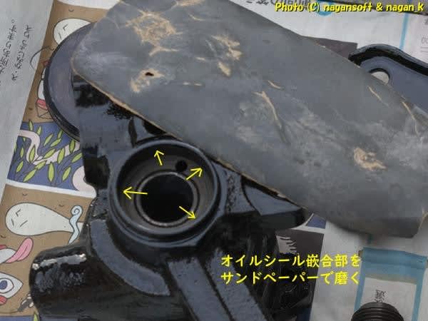 ハウジングのオイルシールとの嵌合部分の錆汚れをサンドペーパーで磨きました。