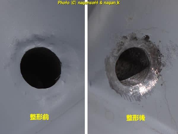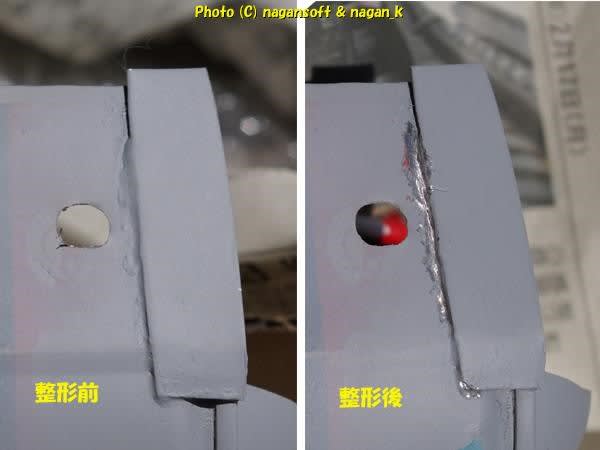 はみ出し部分を、リューターとサンドペーパーで研磨しました。