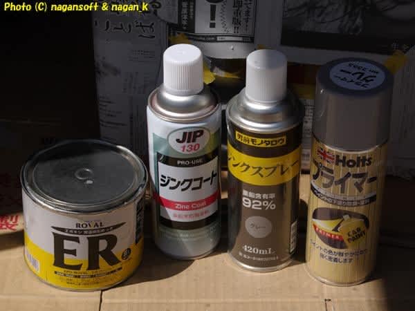錆止め塗料とプラサフを用います。ドレン口のパイプ内側にジンク塗料とかチマチマと適材適所で進めます。