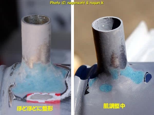 見えるところがボコボコなのは嫌ってことで、パテを練ってなすくりました。
