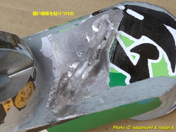 斜めに細い鉄帯をハンダ貼り付けしてみました。