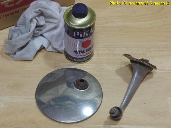 尚、足部分は鋳物整形部品と思います。ついては無垢素材です。メッキではないので躊躇なくサンドペーパーをかけて表面を磨き上げて光沢追求できますよ。