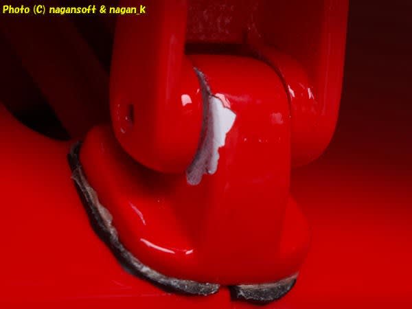左側(エンジンフード閉じる)は、塗装が欠けるようにはがれました。