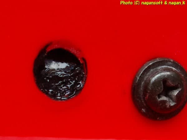 ネジが車体面との並行がでていないらしく、車体面に対して少し斜めにビスが入っていきます。