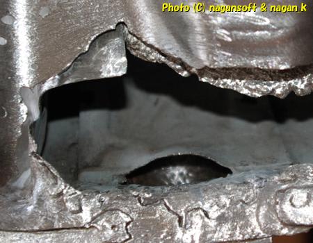でも、綺麗にリューターが当たっていないので錆びは残っている。ついては、この中もサビ転換剤を塗り塗りして処置。