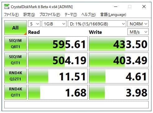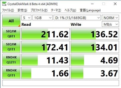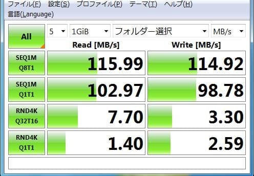 ミュージックサーバー用途なので書き込みスピードはそんなに気にしないのですが、読み込みスピードがねー。倍近く違いますねー。