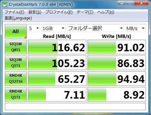 ふむふむ。この程度の書き込みスピードは出るのね。