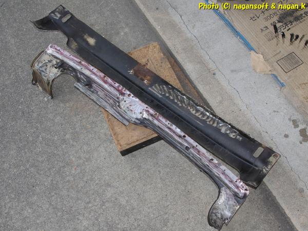 そりゃー、この鉄板は腐るはずです。だってバンパーで隠れている部分に鉄板の合わせがあるんですから、人の目に触れずにデリケートな鉄板の割れ目ちゃんに染みこんでいって錆びの巣窟となるんですね。