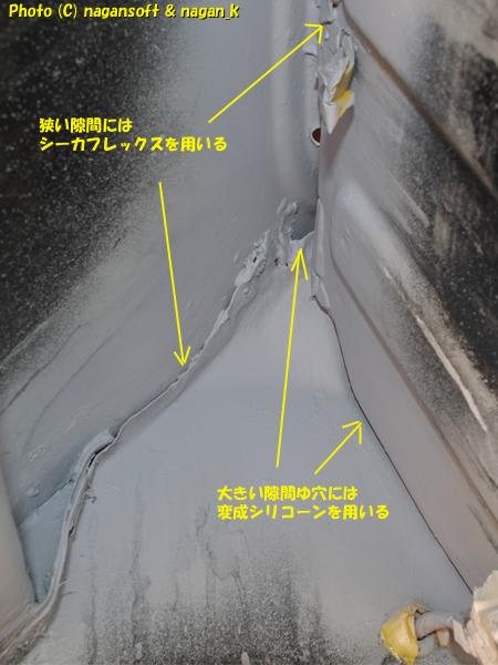 この2種類の使い分けですが、狭い隙間はシーカフレックスを、大き目の隙間や穴塞ぎには変性シリコーンと使い分けます。