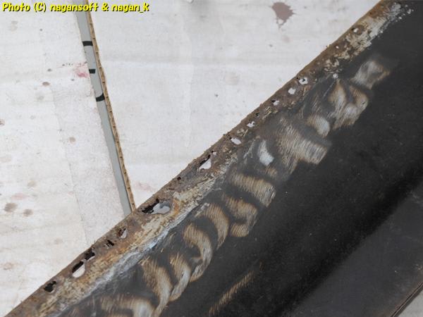 が、しかし、錆び研磨するか、切除して鉄板を継ぐか微妙な境界線の状態に思えます。