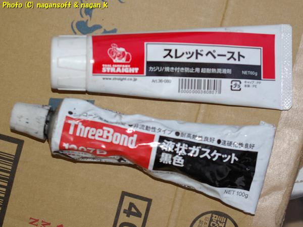 スリーボンドの黒色液体ガスケット、と、ネジの焼き付きかじり防止剤です。