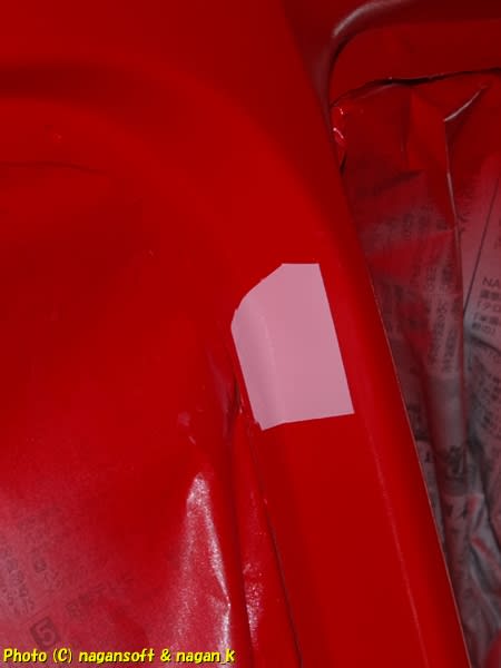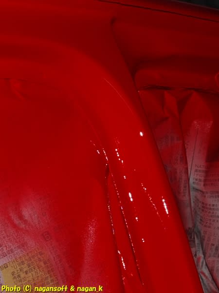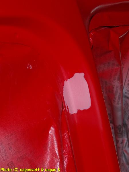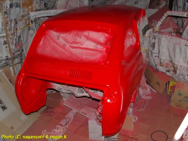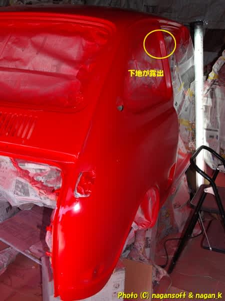 まずは、昨日に吹いた赤色の塗装肌を研磨です。