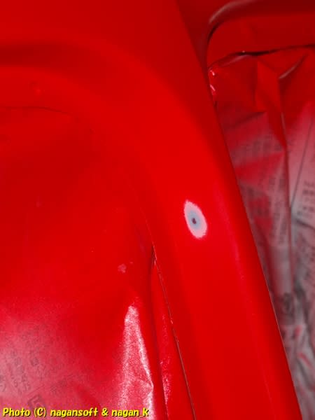 左リヤフェンダーに1円玉ぐらいの大きさの微妙な陥没したように凹みがあるのです。