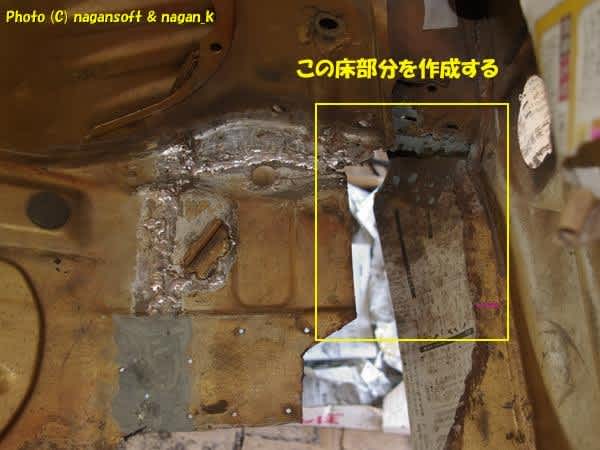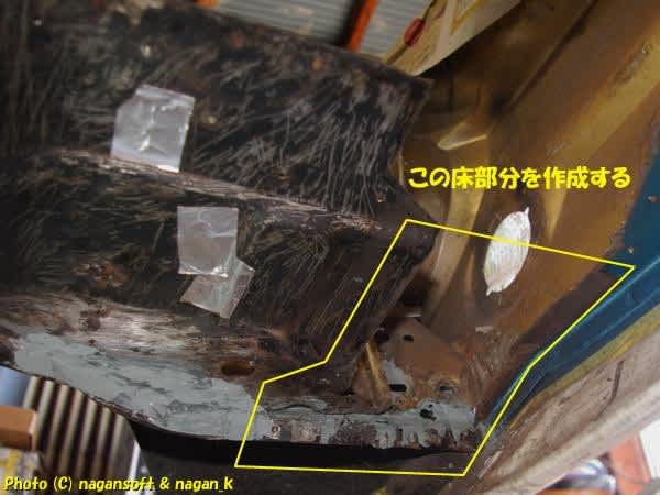 トランク床の左端部分、錆クズ切捨てして欠損している箇所の作成にかかります。