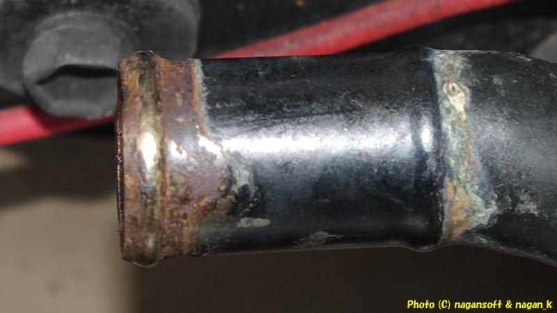 錆びたパイプにホースを差し込むときは、必ず液体ガスケットをなすくって差し込みなさい。と知人自動車整備工場の社長から教えをもらいました。
