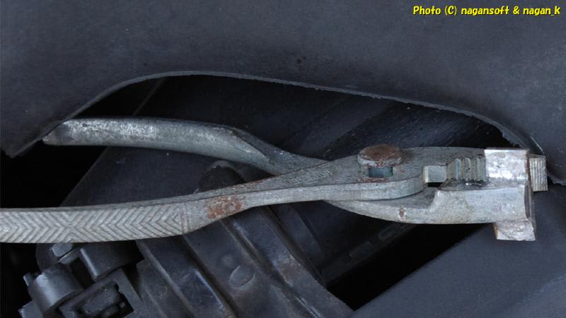 仕方がないのでウオッシャータンクと一緒に取り外すことにします。ウオッシャータンクにはモーターが付いているのでハーネス線もあり、取り外すのが面倒で仕方ありません。
