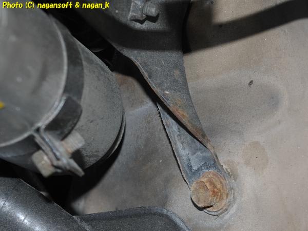 エアコンリキットタンクのブラケット下角と、固定ボルトに錆びが発生しています。