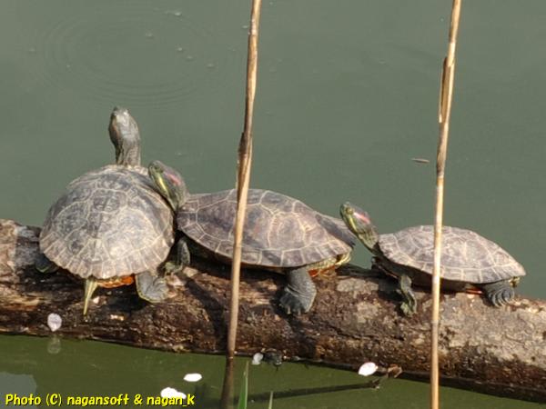 それより、横の池で、仲良く甲羅干ししている亀に興味が行く、お子様の嫁さんでした。