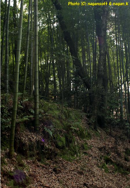 山道の真ん中に竹の子が生えるということは、もちろん回りは竹林です。それもすごく背が高いです。