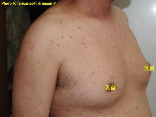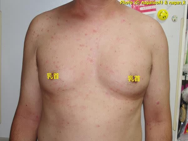 肩、腕、胸に大量に新規発疹したニキビ状のやつ。これを問題視しています。