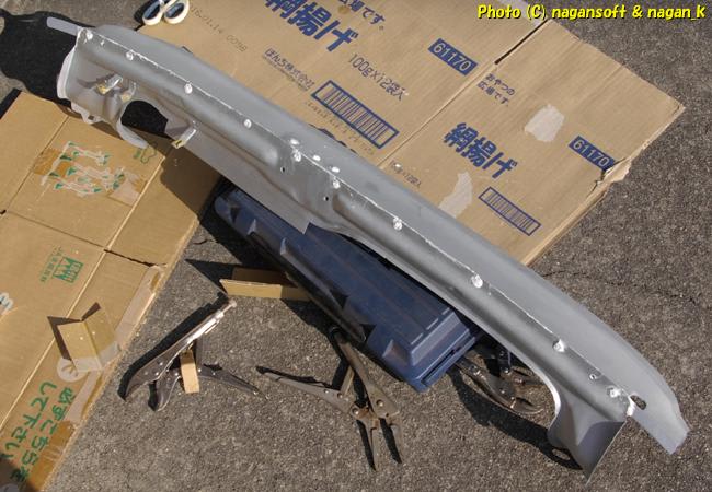 もちろん溶接されていた部品ですが、私が溶接する術がありませんので、リベットで合体しますよ。