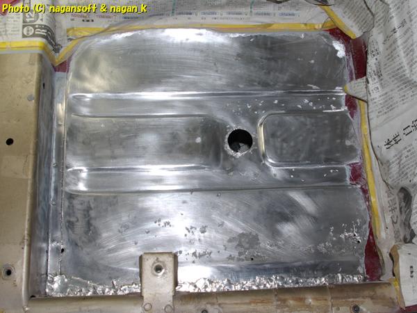 昨日に続き、左後席床の点錆をちまちまとリューターでほじくりました。