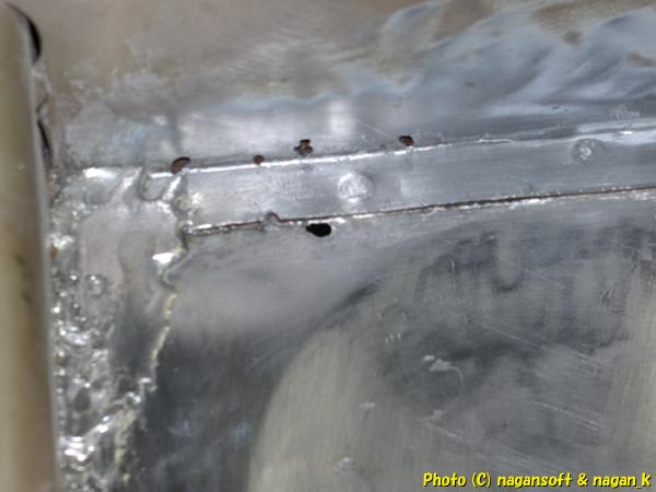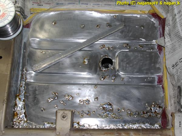 しかし、リューターでえぐってボコボコだしね、錆穴貫通箇所も数箇所ありますので、このまま塗料というわけにはいきません。