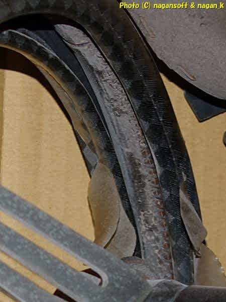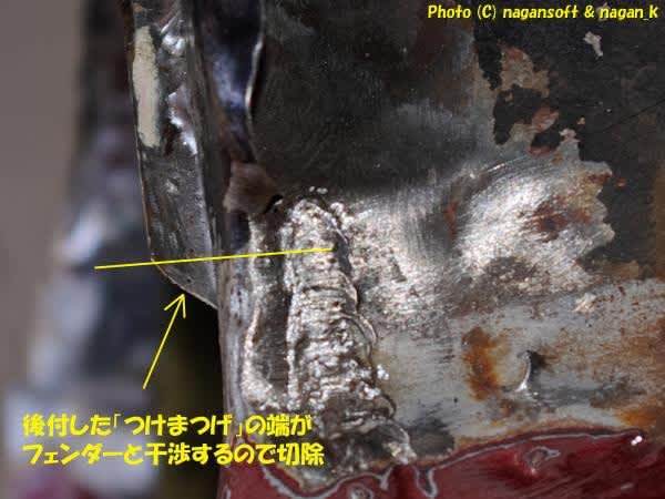 その「つけま」とフェンダーが干渉する部分を削って調整です。