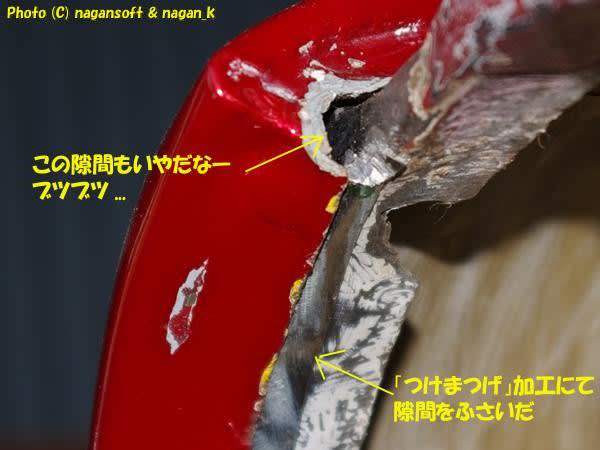 「つけま」にて隙間はふさがりました。でもフェンダー上端折り部分の3角隙間が気に入らないなー