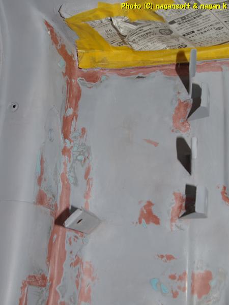 パテが乾くまでの間に、車体裏をマスキングします。