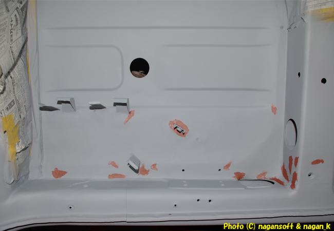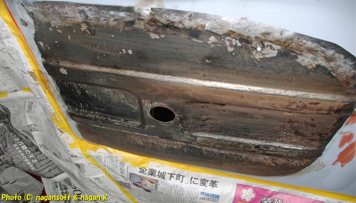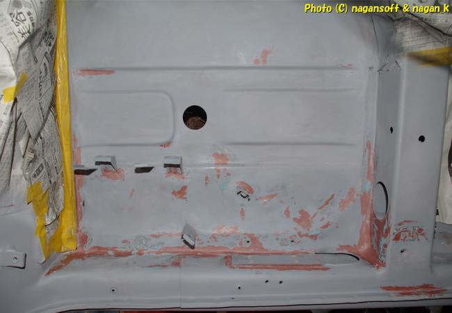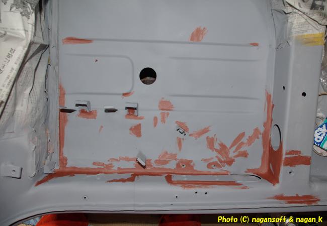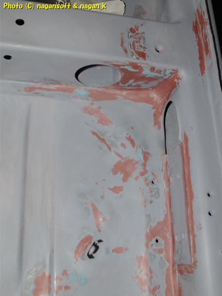 今月中に、床裏を終わらせて、できればリヤガラスも外してガラスはめこみ部分のサビ処置も終わらせたいのですが….